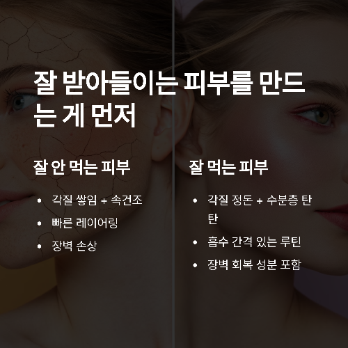 흡수 잘 되는 피부를 만드는 핵심은 ‘흡수 전 상태를 만드는 루틴’입니다.
