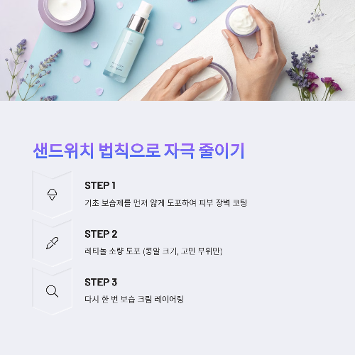 3. “보습제를 먼저 바르고 레티놀을 덧바르자 – ‘샌드위치 법칙’”