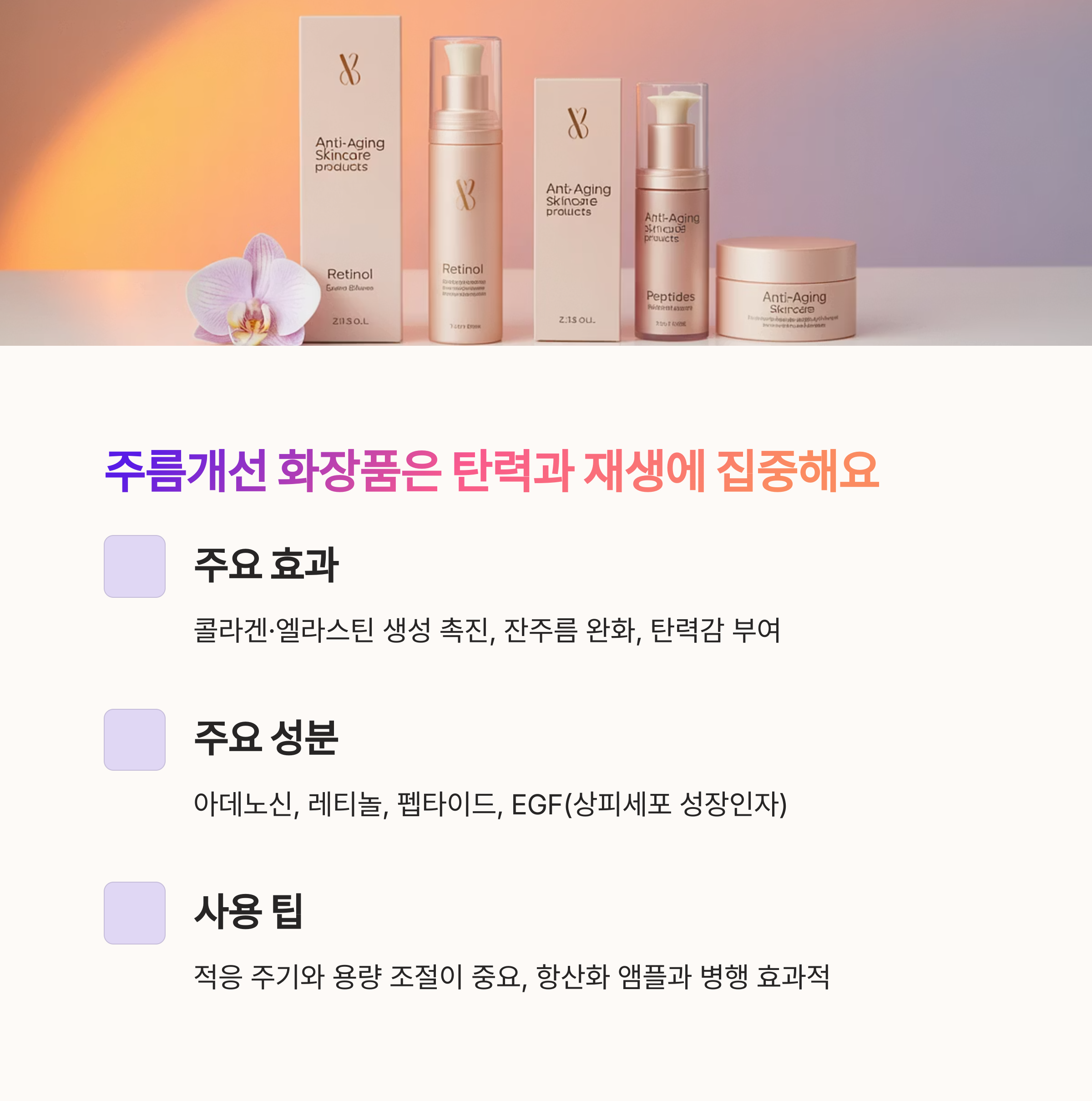 2️⃣ “주름개선 화장품은 탄력과 재생에 집중한다”