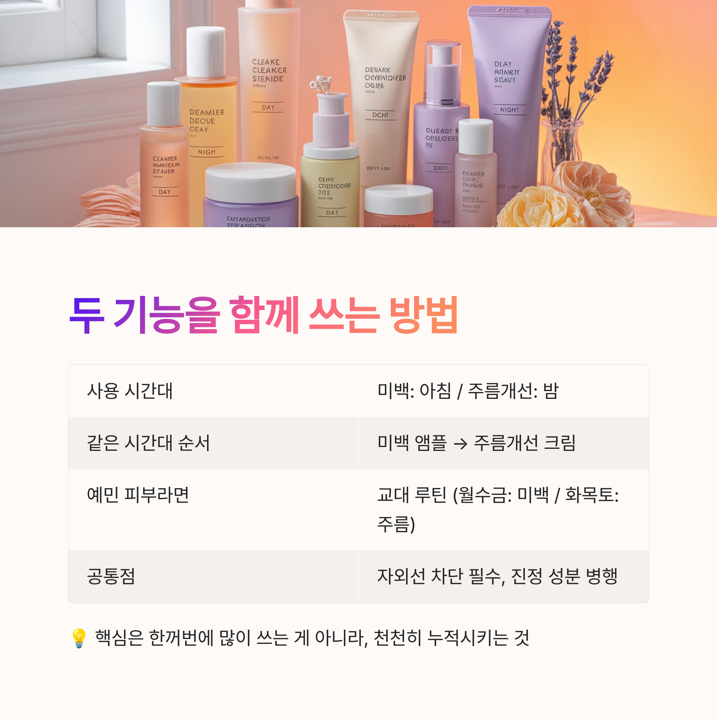 | 같은 시간대 쓸 경우 순서 | 미백 앰플 → 주름개선 크림 |