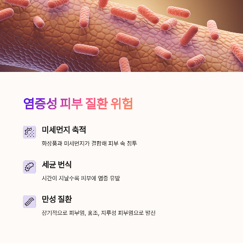 화장 잔여물은 단순한 노폐물이 아닌 피부 장벽을 무너뜨리는 주범입니다.