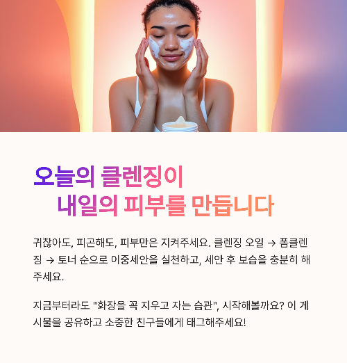자기 전 클렌징은 단순한 세안이 아니라 피부 재생의 시작점입니다.
