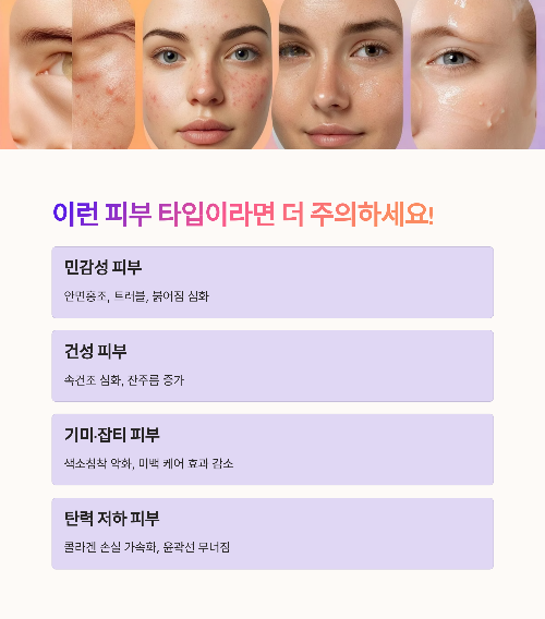 | 건성 피부 | 속건조 심화, 잔주름 증가 |
