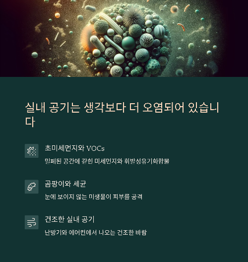 사실 실내 공기 오염이 피부 건조, 탄력 저하, 트러블에 큰 영향을 준다는 사실, 알고 계셨나요?