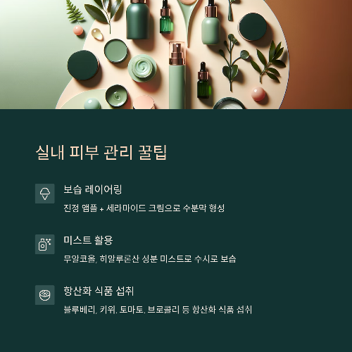 | 실내 적정 습도 유지 (40~60%) | 피부 속 수분 증발 방지 |