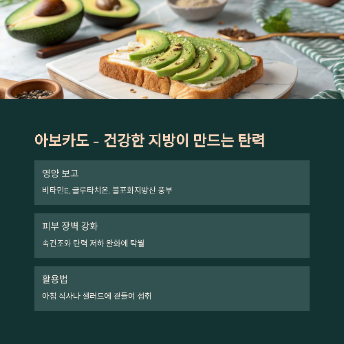 4. 아보카도 – 건강한 지방이 만드는 탄력