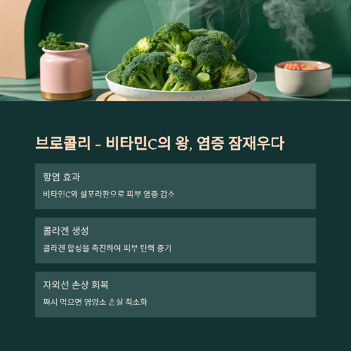 6. 브로콜리 – 비타민C의 왕, 피부 염증을 잠재우다