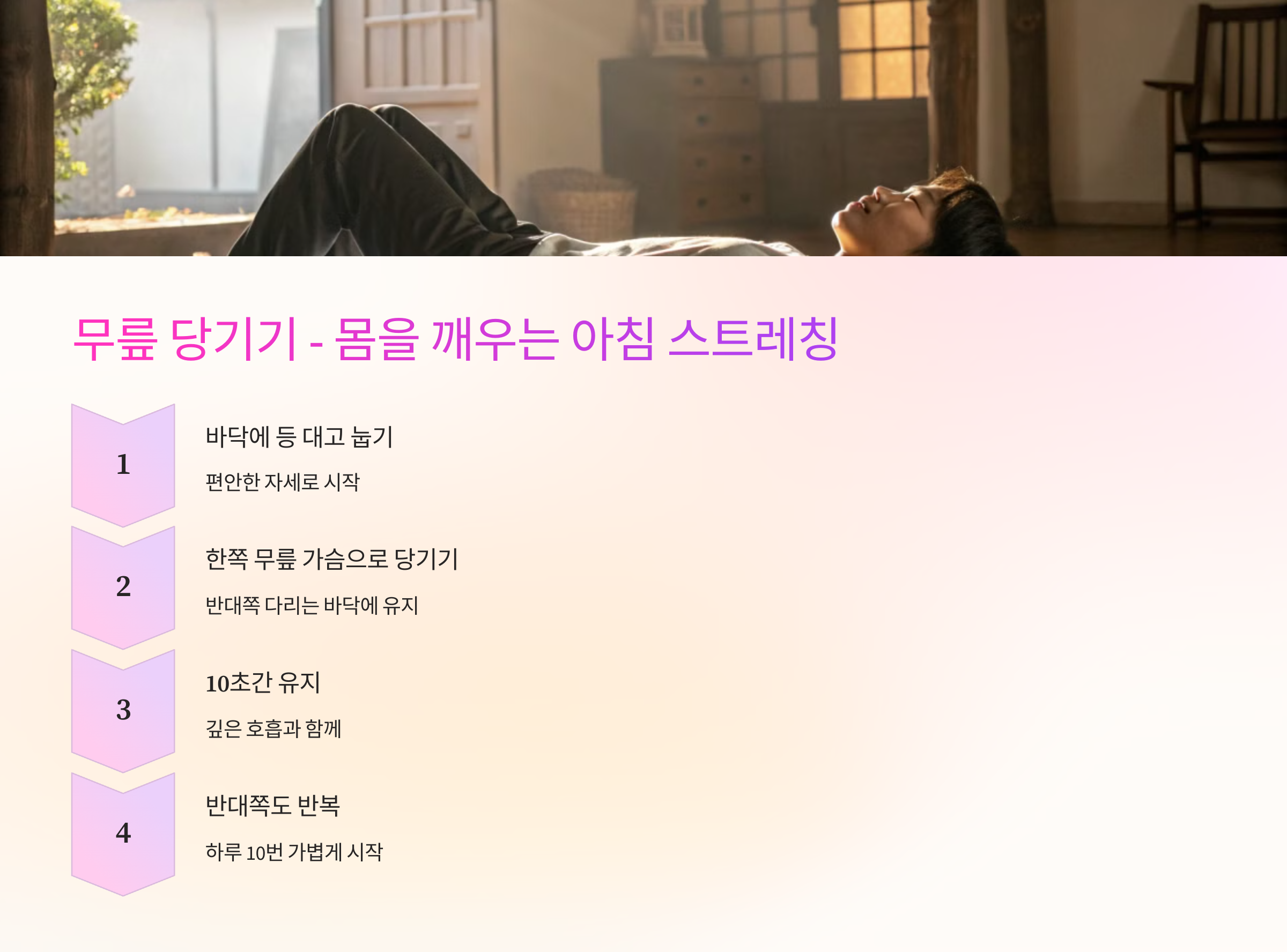 1️⃣ 무릎 당기기 – 몸을 깨우는 아침 스트레칭