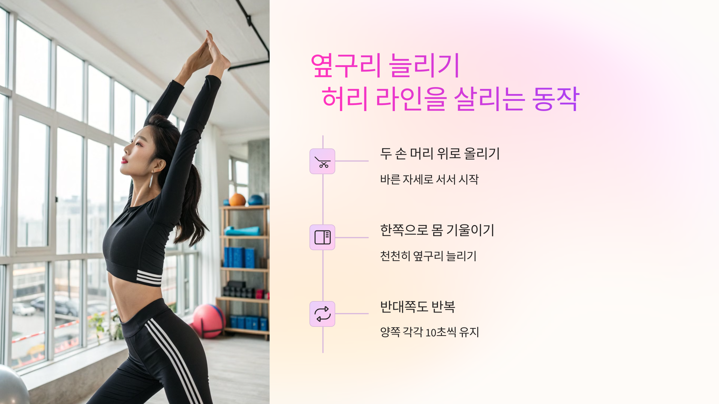 2️⃣ 옆구리 늘리기 – 허리 라인을 살리는 동작