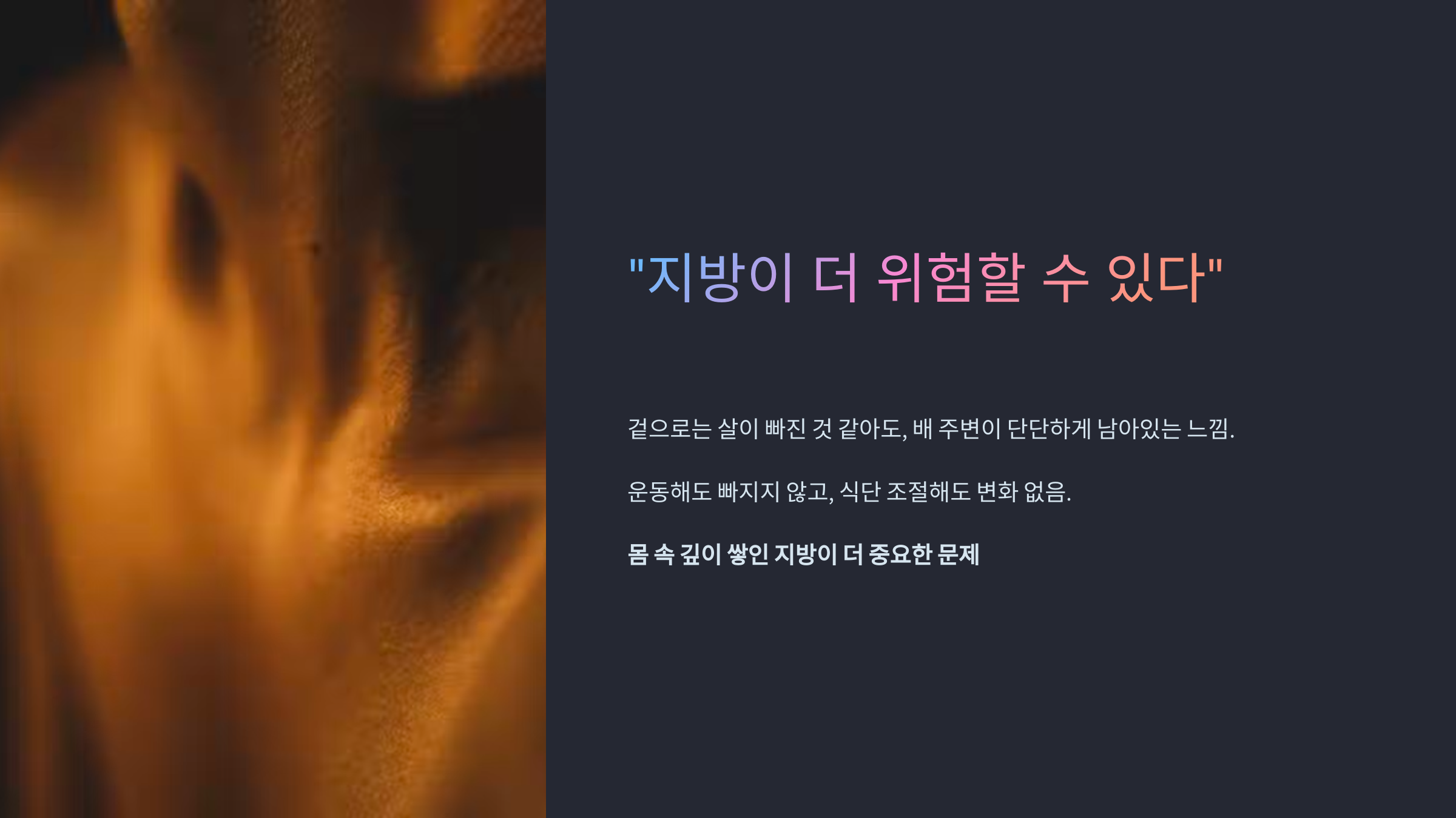 "왜 겉으로 보이는 살은 빠져도, 속에 쌓인 지방은 그대로일까?"
