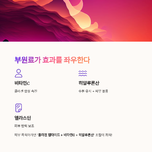 ‘콜라겐 펩타이드 + 비타민C + 히알루론산’ 조합을 추천합니다.