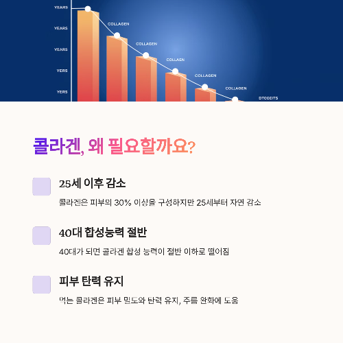 40대가 되면 콜라겐 합성 능력이 절반 이하로 떨어집니다.