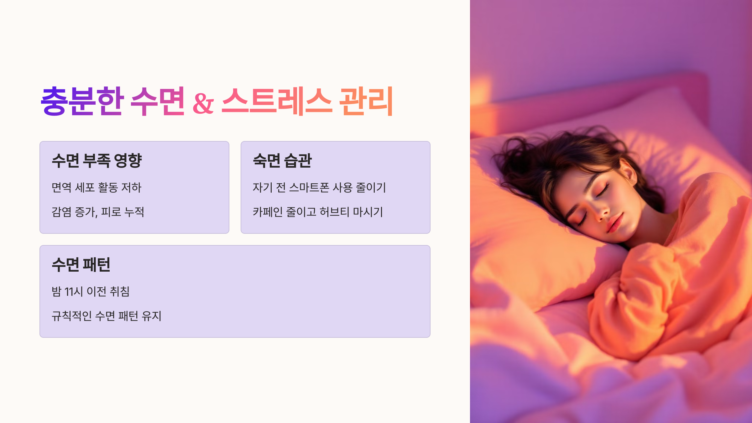 👉 수면의 질을 높이면 면역력이 자연스럽게 강화됩니다!