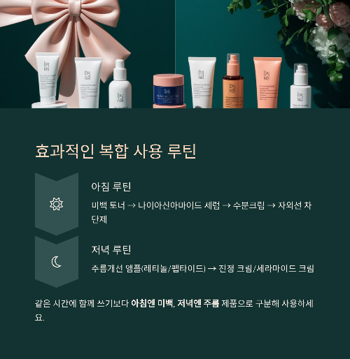 ✔ 두 가지가 동시에 고민이라면 복합기능 제품이나 루틴을 나눠 사용하세요.