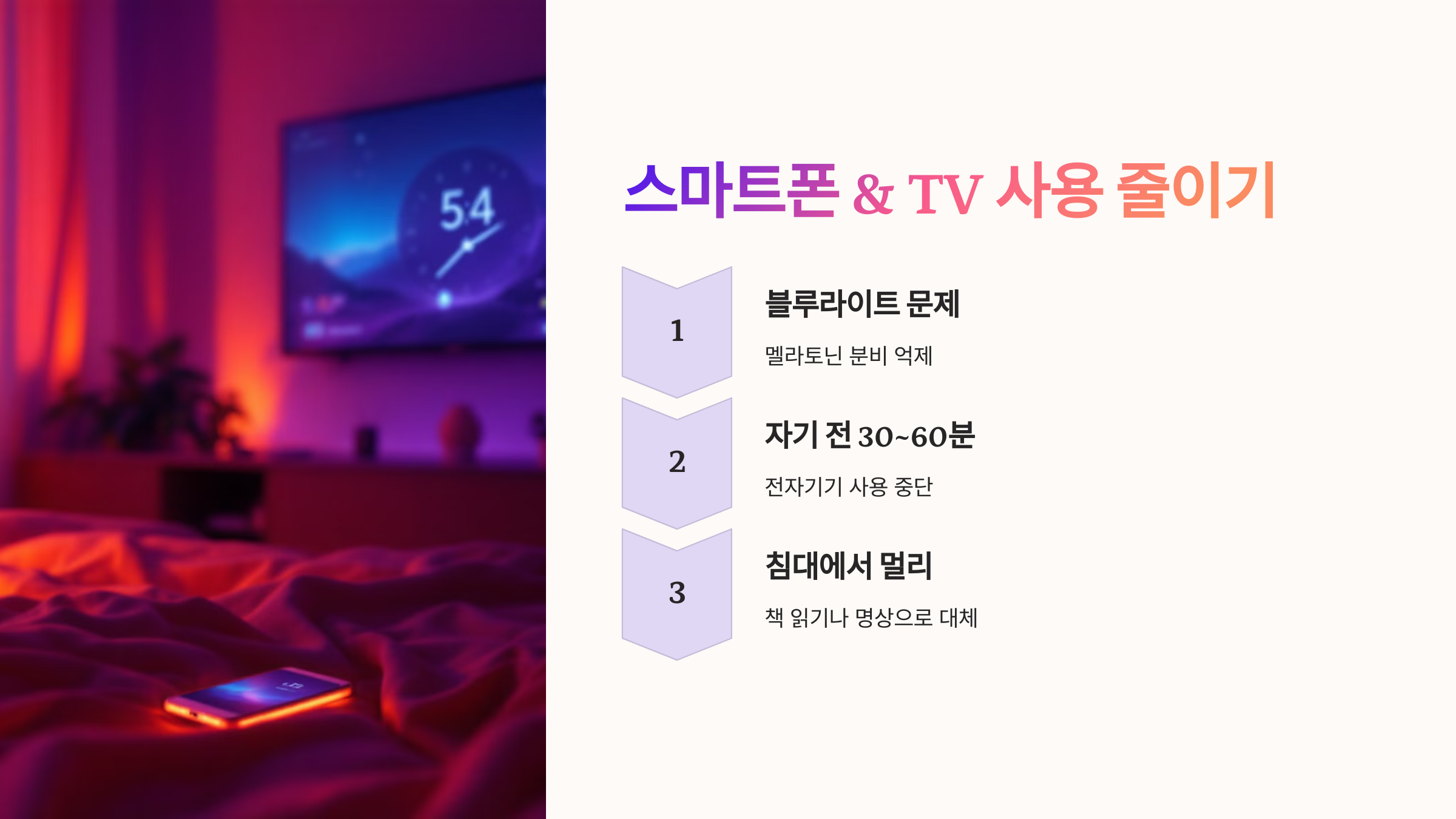 2️⃣ 자기 전에 스마트폰 & TV 사용 줄이기