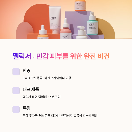 - 대표 제품: 멜릭서 비건 립버터, 수분 크림