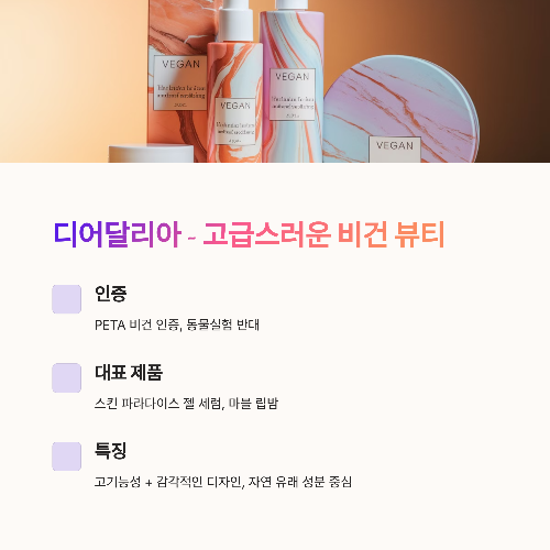 - 인증: PETA 비건 인증, 동물실험 반대