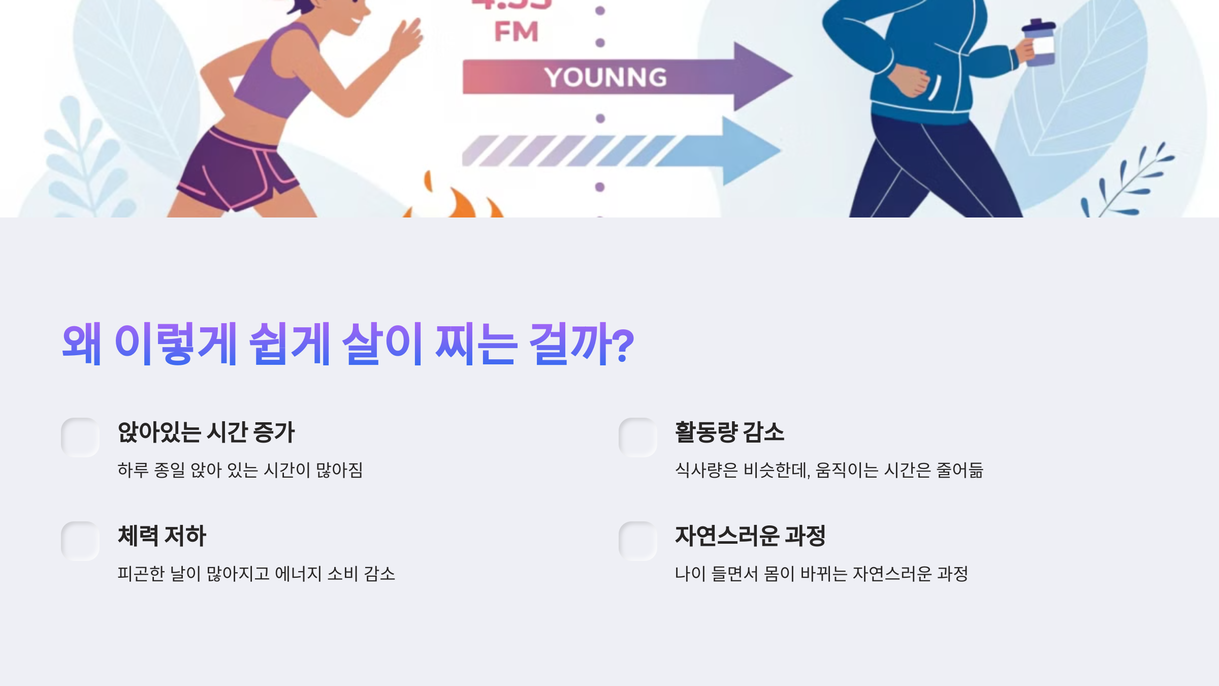 ✔ 예전에는 똑같이 먹어도 살이 찌지 않았는데, 이제는 그대로 축적된다