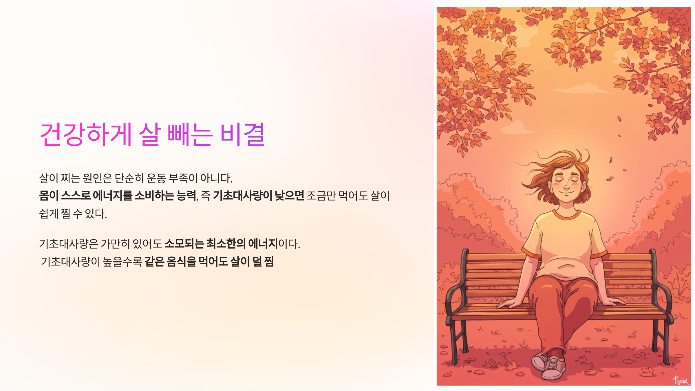 💡 기초대사량을 높이면 같은 양을 먹어도 더 많은 칼로리를 소모할 수 있어요!