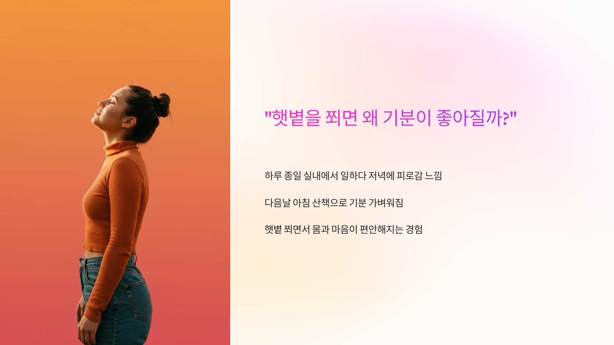 🚀 "오늘부터 햇볕을 더 많이 쬐어보자!"