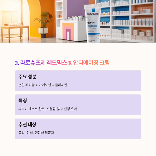 | 라로슈포제 | 레티놀+글리세린 | 진정력 우수 | 민감, 입문자 |