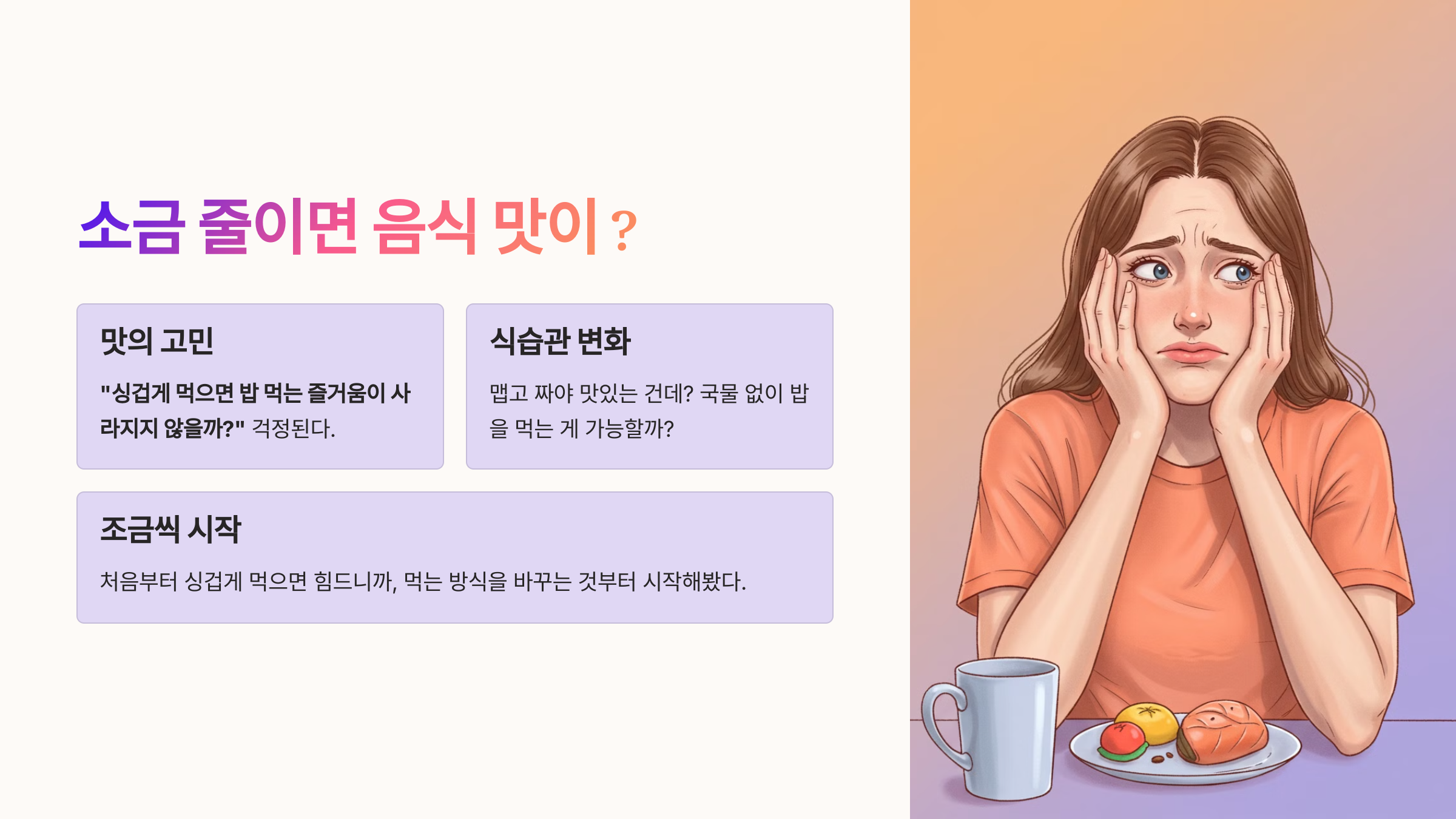 📌 "완전 싱겁게 먹는 건 무리였어요. 대신 이렇게 바꾸니까 괜찮았어요!"