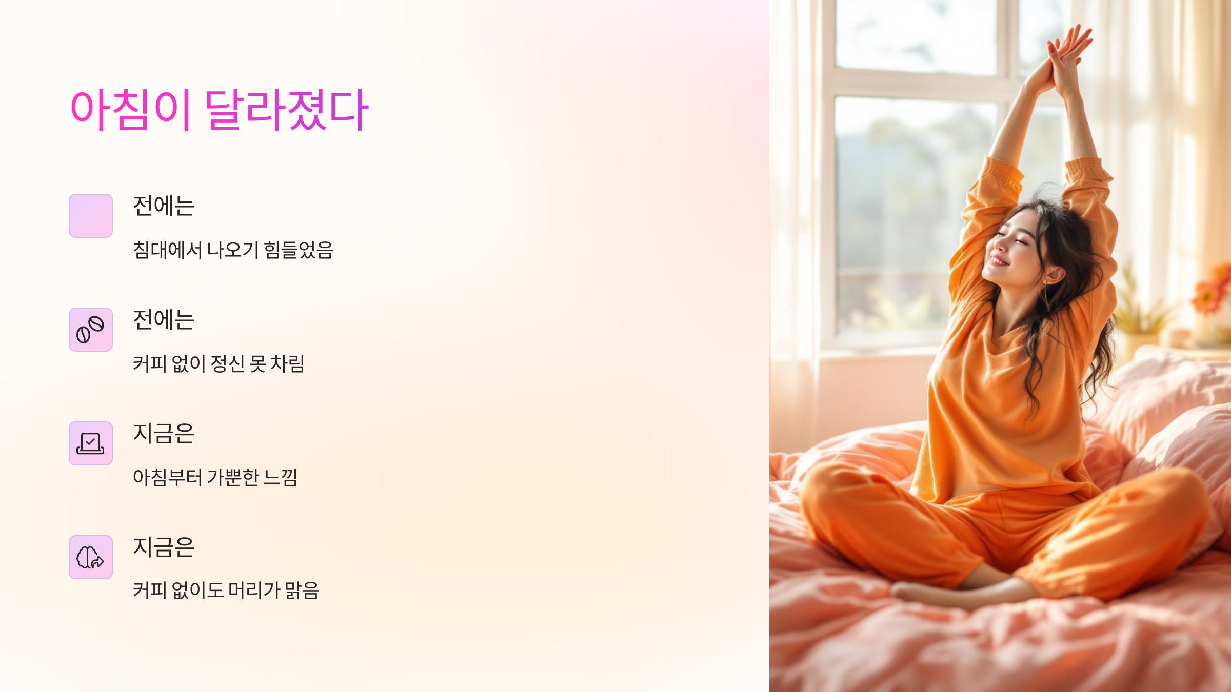 ✔ 아침이 개운하고, 하루 종일 활력이 유지됨