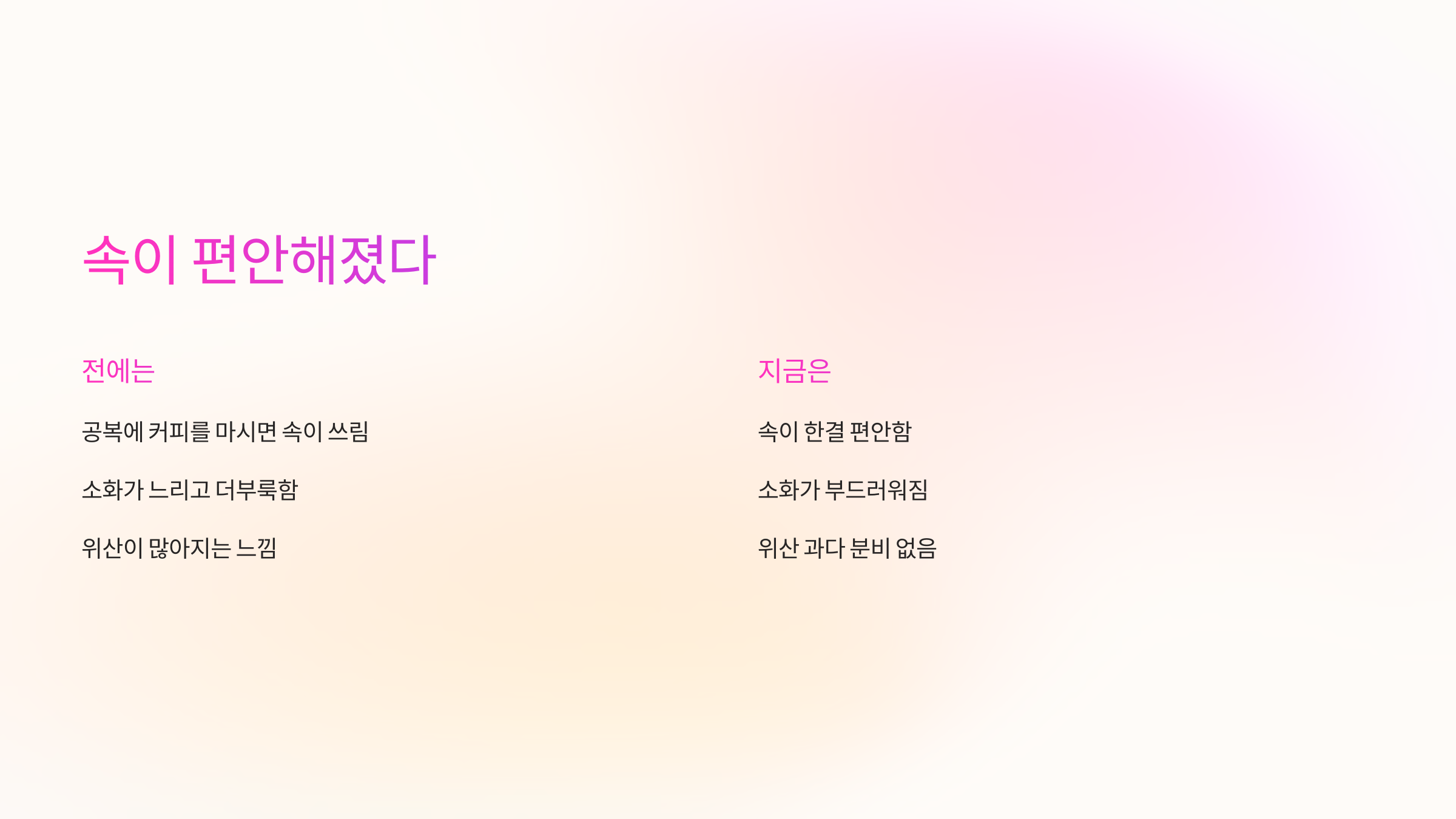 ✔ 속쓰림이 사라지고, 소화가 원활해짐