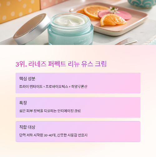 - 🔸 산뜻한 데일리 탄력 관리 → 라네즈 퍼펙트 리뉴 크림