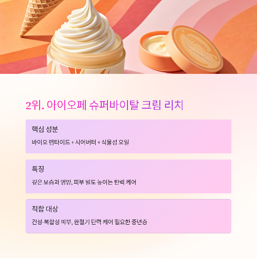 - 🔸 깊은 보습 + 영양감 → 아이오페 슈퍼바이탈 리치 크림