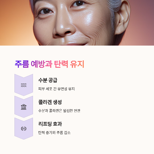 피부 속 수분 유지, 노폐물 배출, 장 건강과 면역력 향상,