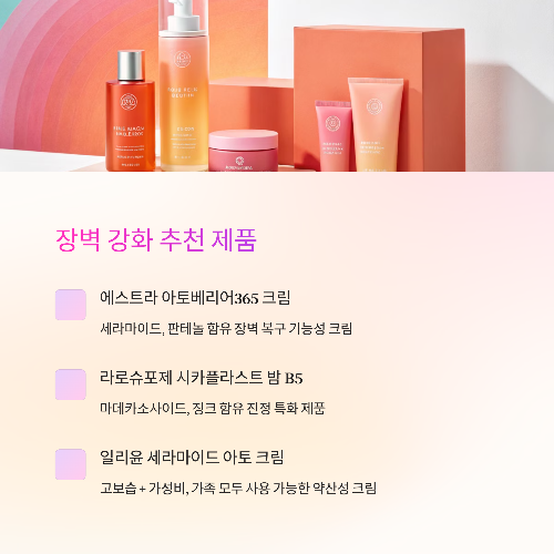 이 성분들이 포함된 스킨케어 제품을 단순하고 안정적인 루틴으로 구성하는 것이 장벽 회복의 핵심입니다.