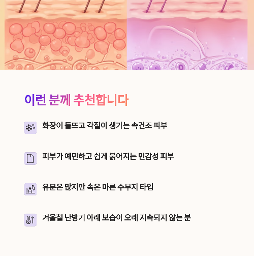 - 화장하면 들뜨고 각질이 생기는 속건조 피부