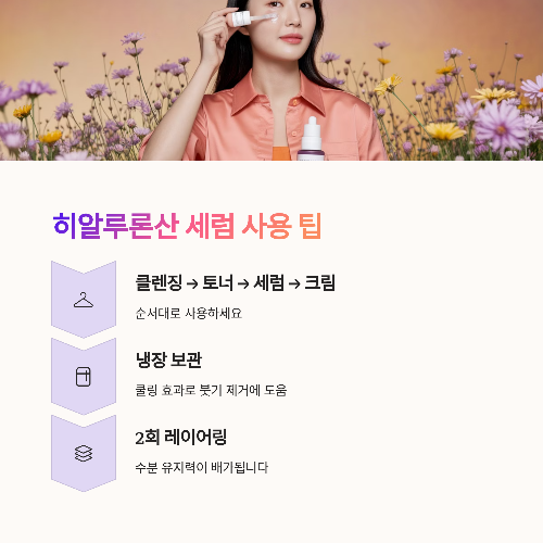 ✔ 클렌징 → 토너 → 히알루론산 세럼 → 크림 순으로 사용