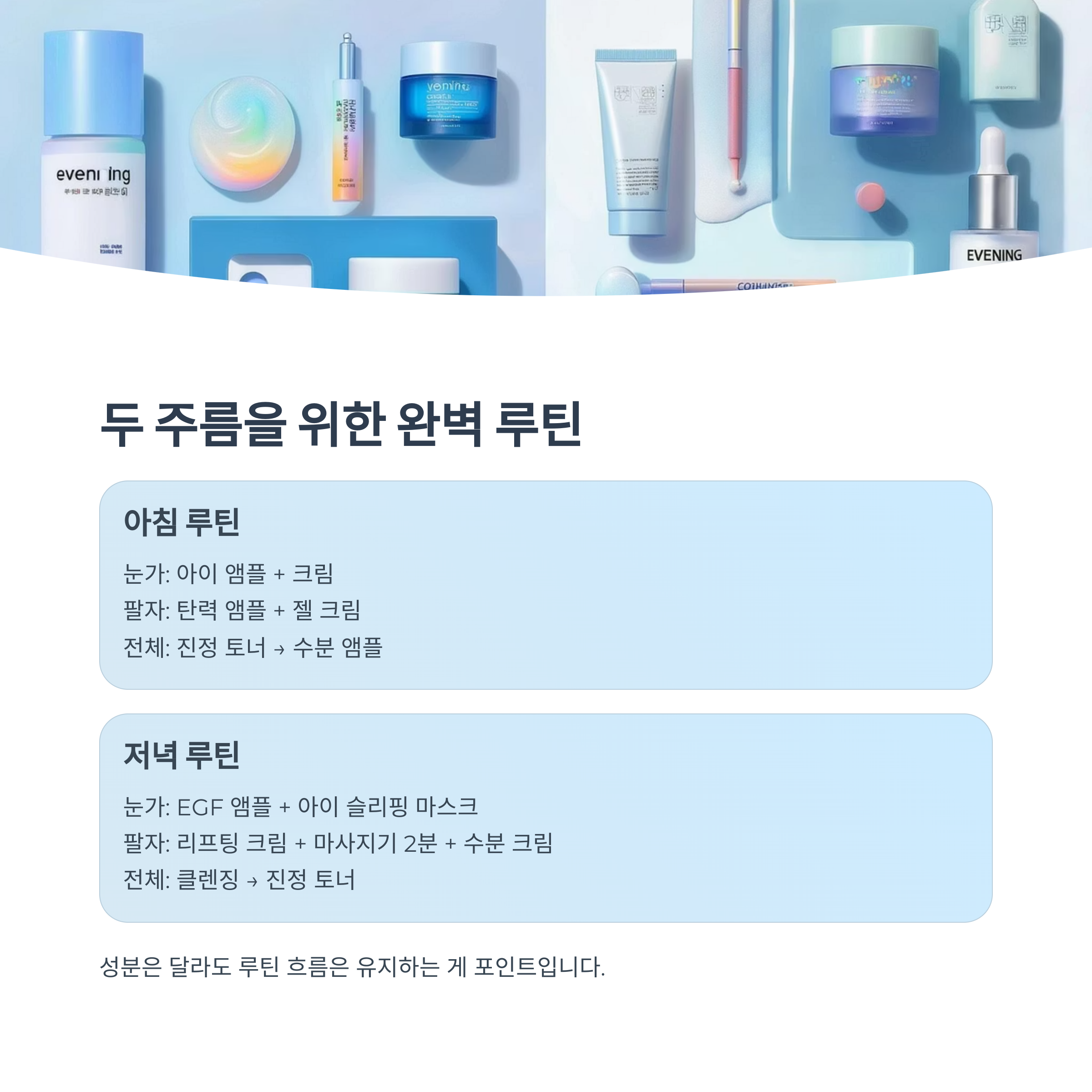 단, 성분은 달라도 루틴 흐름은 유지하는 게 포인트입니다.