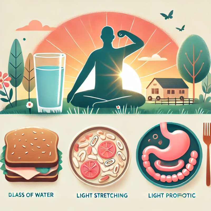 🌅 1단계: 아침 – 물 한 잔 + 장을 깨우는 편안함
