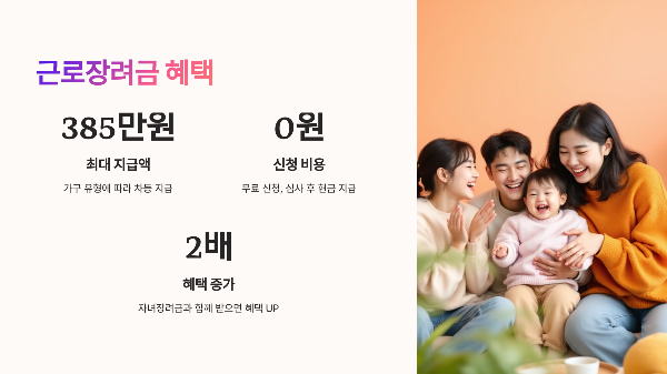 근로장려금은 저소득 근로자, 사업자, 종교인이 받을 수 있는 현금성 지원금으로, 가구별 소득과 재산 요건을 충족하면 최대 385만 원까지 지급됩니다! 지급금액,신청기준, 신청방법, 자주묻는질문까지 상세하게 설명드리겠습니다. 2025년 근로장려금을 찾으셔서 가족에 필요한 것을 얻을 수 있는 기회를 얻어 보세요!!