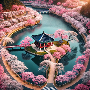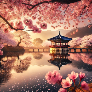 ✔️ 호수에 비친 벚꽃이 환상적인 분위기를 연출합니다.