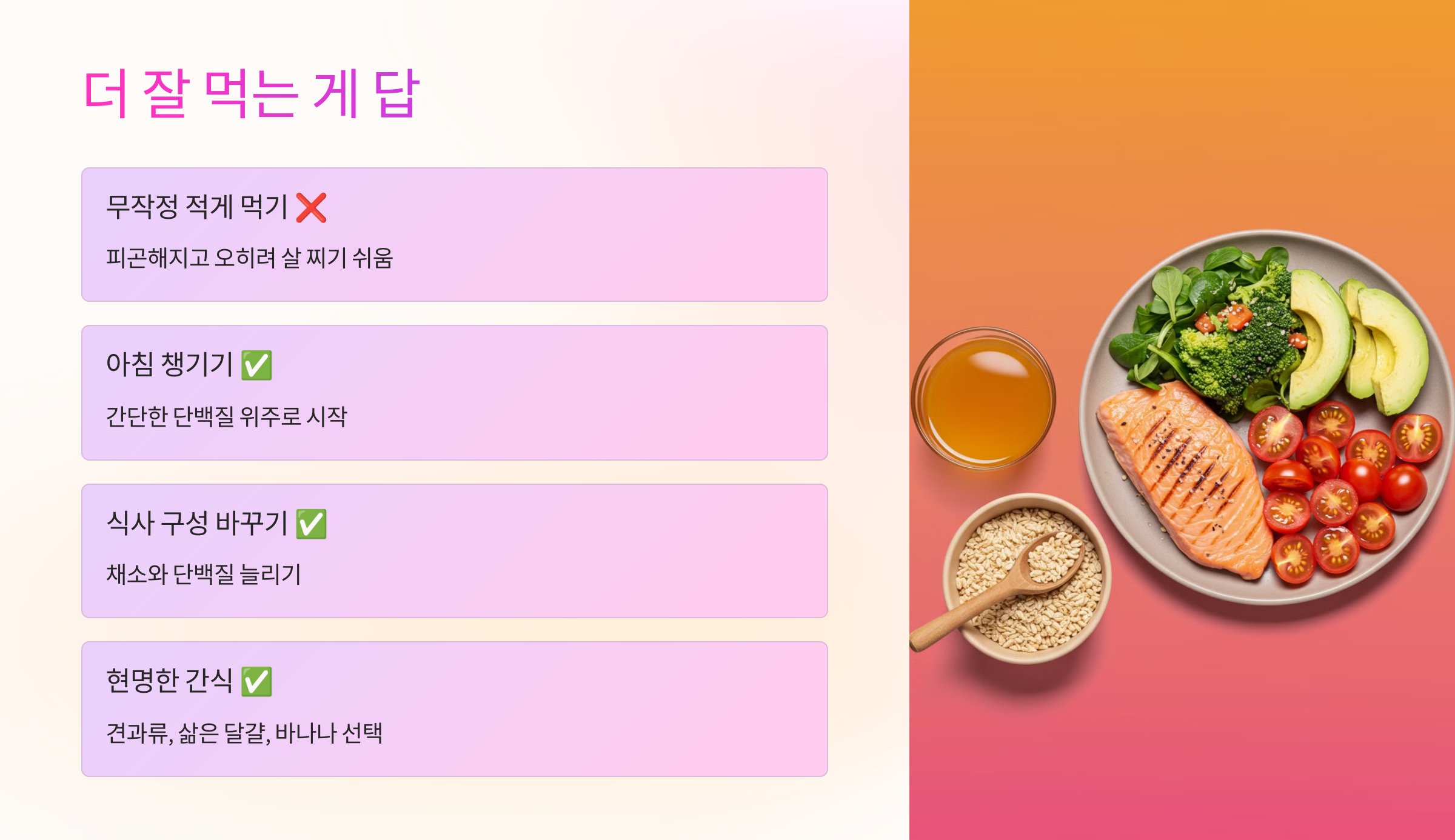 🌿 1️⃣ 덜 먹는 게 아니라, 더 잘 먹는 게 답