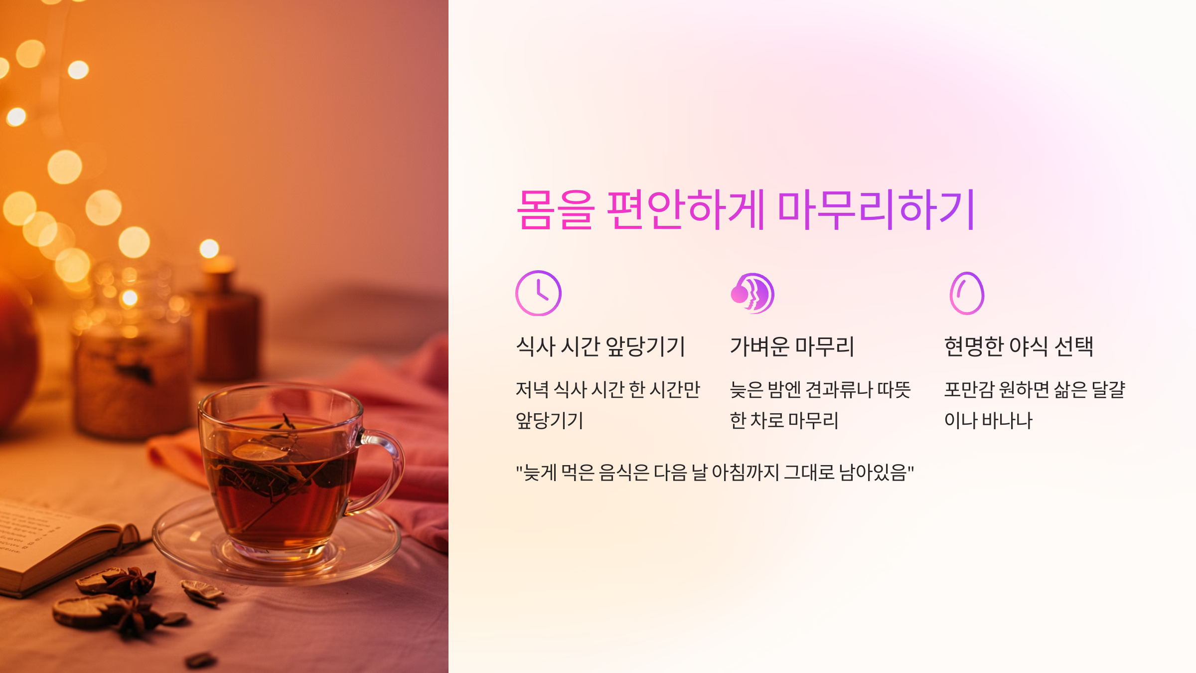 ✔ 늦은 밤 폭식만 피해도 변화가 시작된다